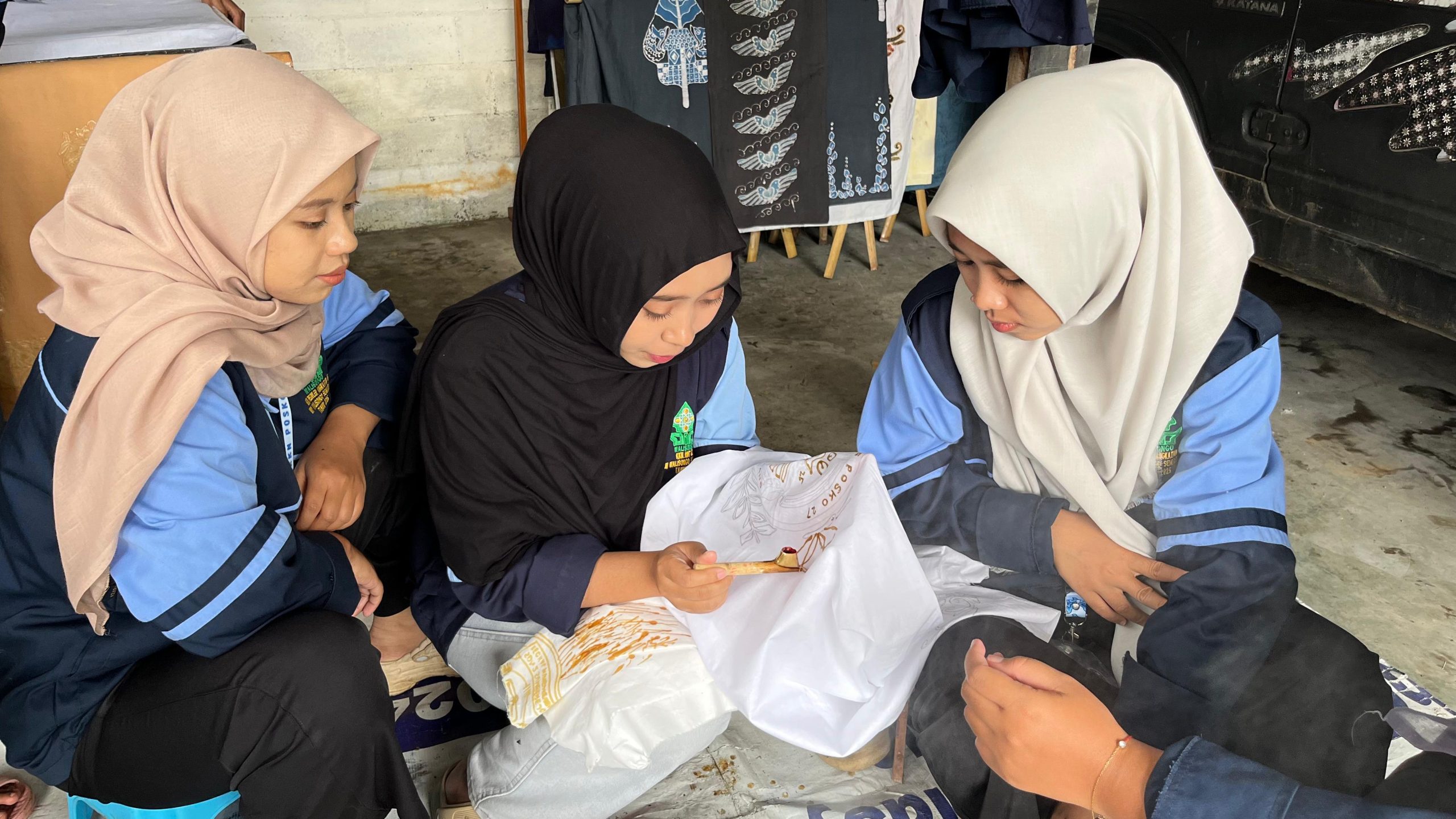 Dalam kegiatan ini, mahasiswa belajar secara langsung teknik dasar membatik, mulai dari menulis hingga mencanting sendiri di atas kain.