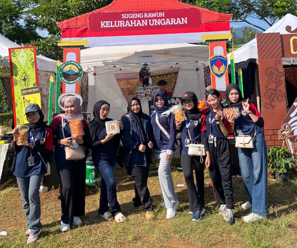 Kelurahan Ungaran turut ambil bagian secara aktif dengan menampilkan berbagai produk unggulan UMKM lokal seperti emping jagung, lumpia khas Semarang, nasi kuning, aneka minuman jus dan teh tarik, serta produk hasil program kerja mahasiswa berupa lilin aromaterapi.