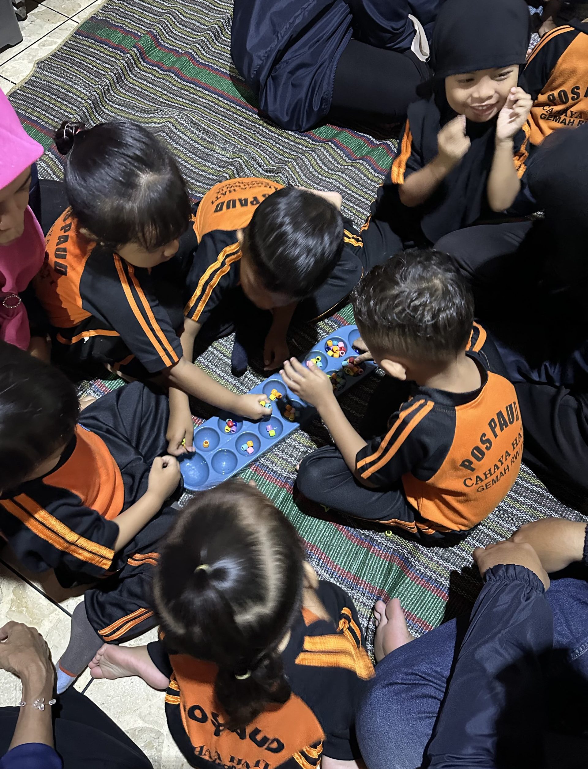 Suasana di POS PAUD Cahaya Hati tampak pecah dengan gelak tawa puluhan anak-anak. Para mahasiswa dengan sabar memandu setiap gerakan dan aturan main, memastikan setiap anak terlibat aktif.