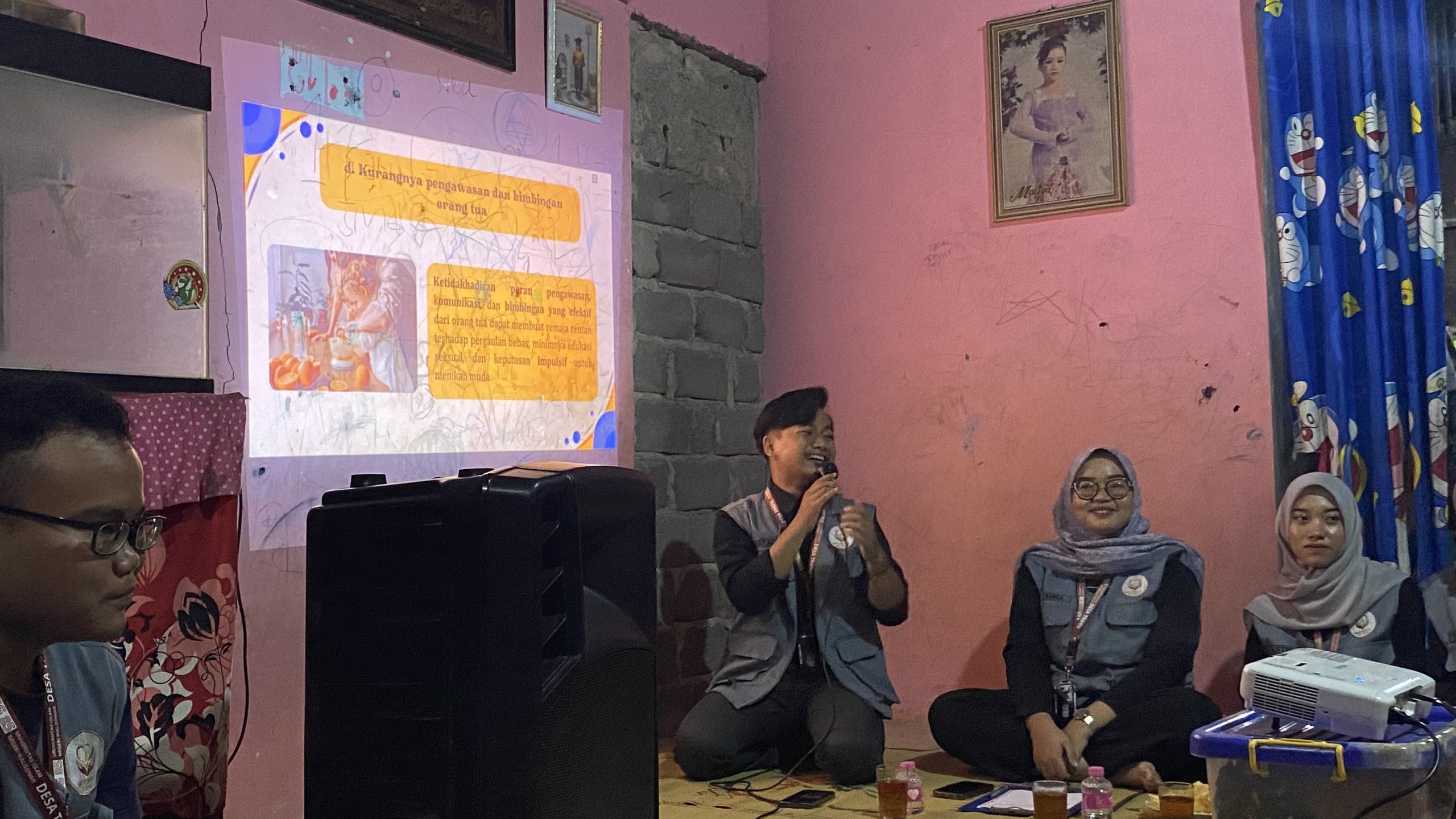 Selanjutnya, kegiatan diisi dengan penyampaian materi utama oleh mahasiswa KKN yang menjelaskan faktor-faktor penyebab pernikahan anak, dampak sosial dan kesehatan yang ditimbulkannya, serta langkah-langkah pencegahan yang bisa dilakukan oleh masyarakat dan keluarga.