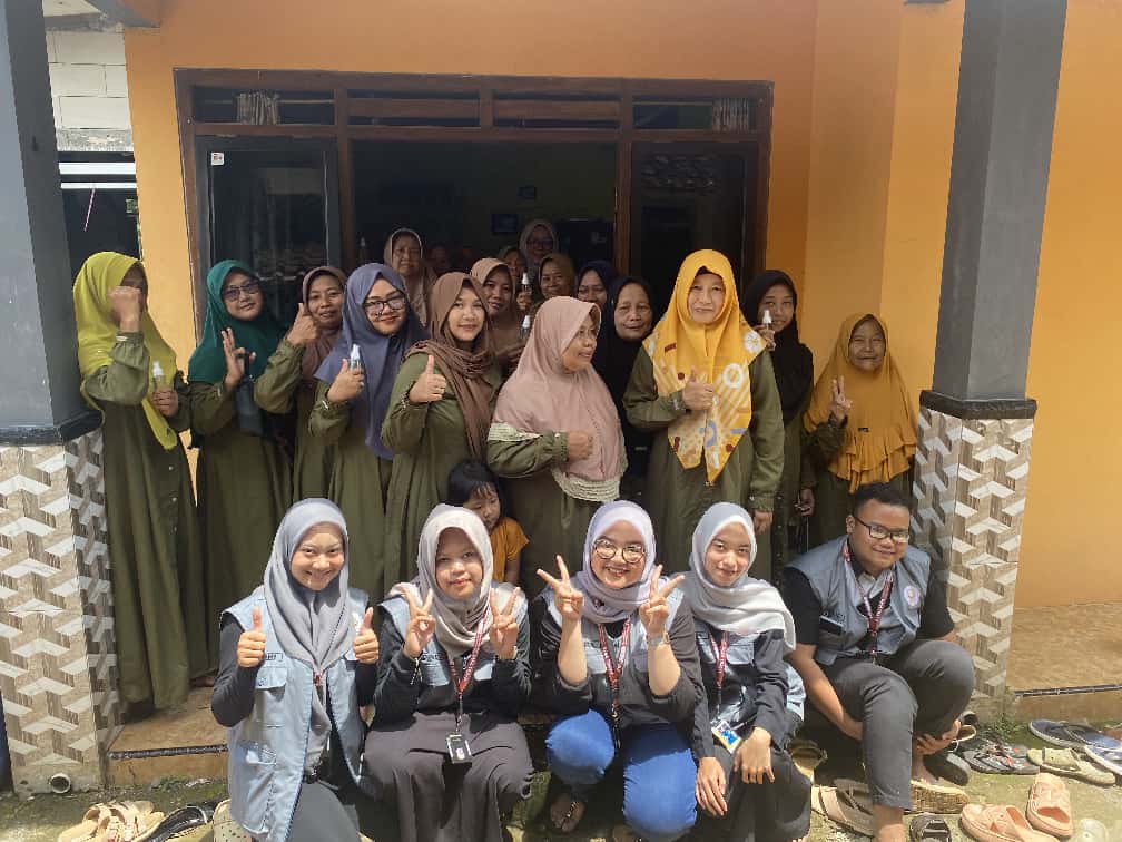 Ibu-ibu PKK tampak antusias mengikuti setiap tahap demonstrasi. Mereka juga berkesempatan mencoba langsung membuat spray serai menggunakan bahan-bahan sederhana yang mudah diperoleh di sekitar lingkungan rumah.