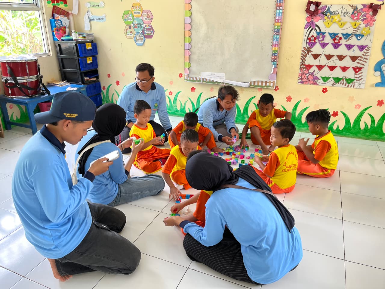 Mahasiswa KKN Posko 25 tidak hanya mendampingi, tetapi juga berinteraksi sambil memberikan edukasi ringan kepada anak-anak TK Dharma Rini.