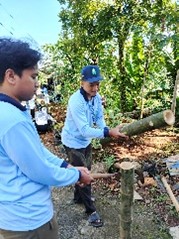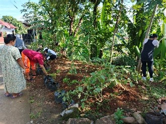 Usai sesi pemaparan, semangat gotong royong langsung terasa. Mahasiswa dan Ibu-ibu PKK bahu-membahu membersihkan lingkungan, menggemburkan tanah, dan menanam bibit.