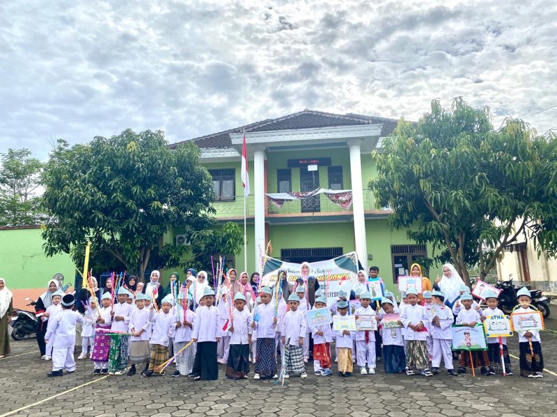 Anak-anak berjalan penuh semangat sambil melantunkan sholawat dan yel-yel santri, diiringi oleh para guru dan orang tua murid yang hangat mendampingi mereka sepanjang perjalanan.