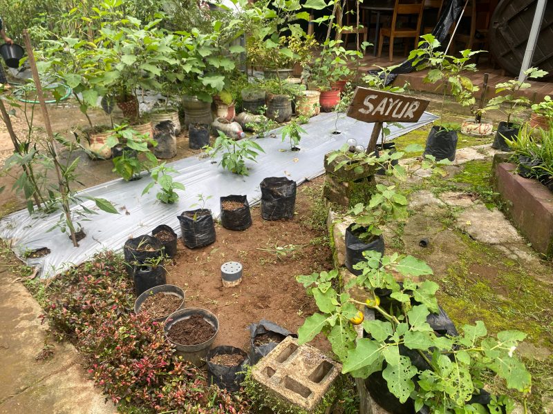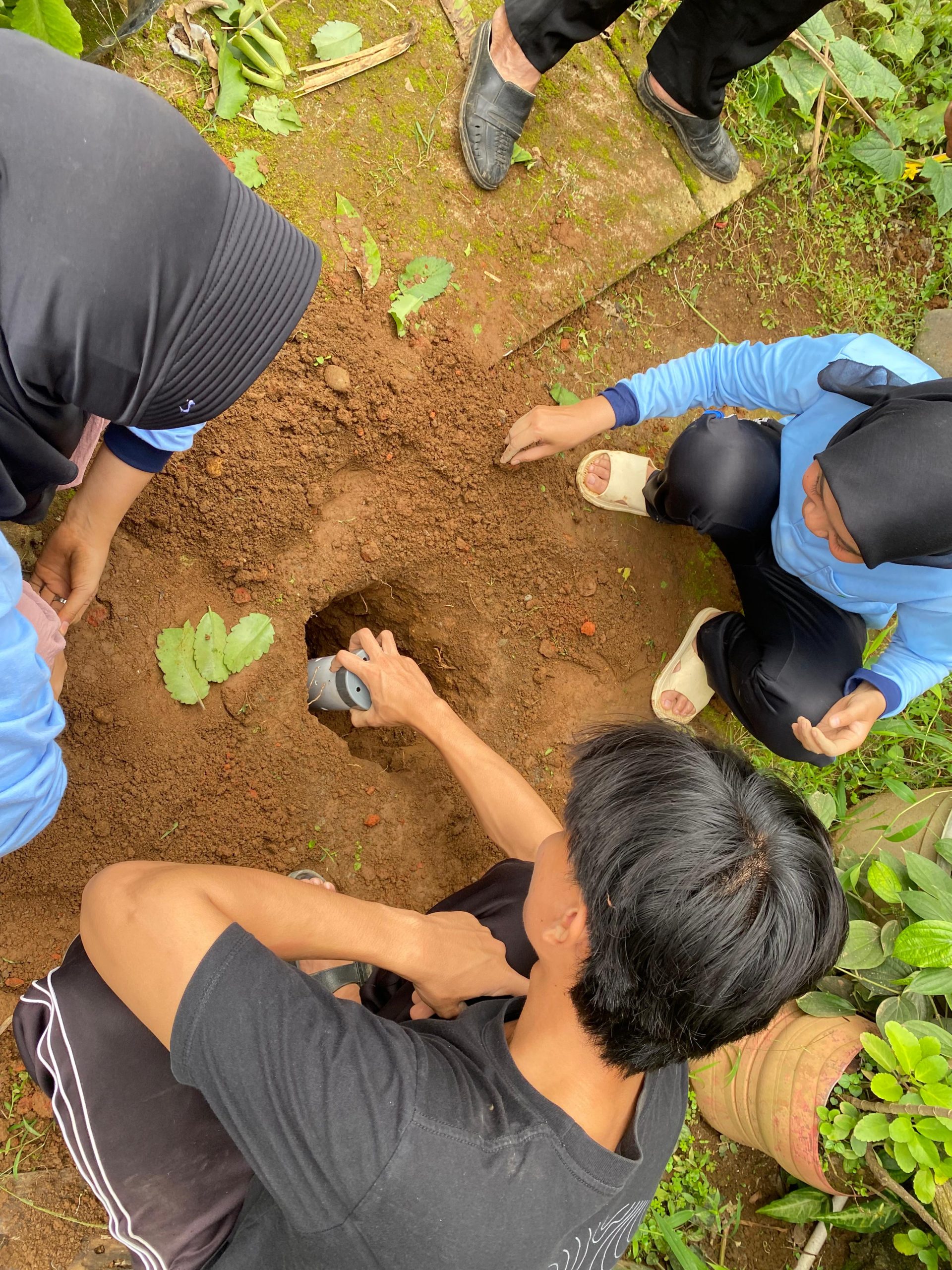 Selain penataan taman, mahasiswa KKN juga melakukan pembuatan lubang biopori sebagai bagian dari gerakan konservasi air dan pengelolaan sampah organik.
