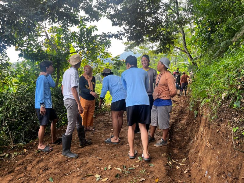 Mahasiswa KKN terlibat aktif membantu warga menebang pohon di sepanjang jalan, merapikan tanah yang tidak rata, membuat saluran air (selokan), serta membantu proses pelebaran jalan.
