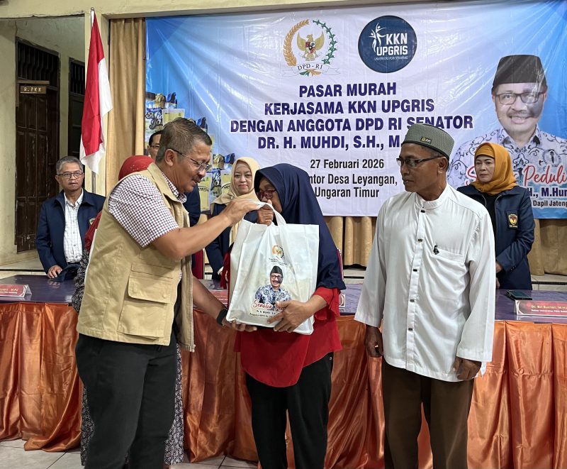 Jatengvox.com – Desa Leyangan, Kecamatan Ungaran Timur, Kabupaten Semarang, menjadi lokasi pelaksanaan kegiatan pasar murah yang digelar mahasiswa Kuliah Kerja Nyata (KKN) Universitas PGRI Semarang (UPGRIS) bekerja sama dengan DPD RI, khususnya Anggota DPD RI Dapil Jawa Tengah, Dr. H. Muhdi, S.H., M.Hum.