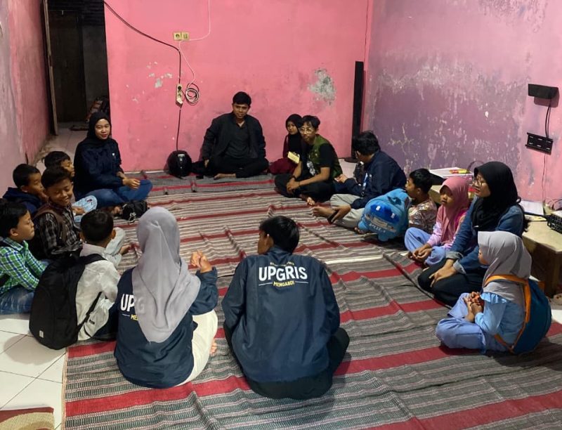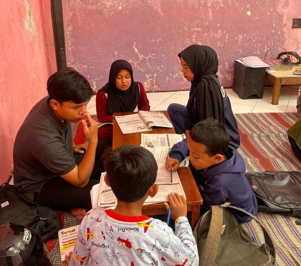 Melalui kegiatan bimbingan belajar bersama, mahasiswa berperan aktif membantu anak-anak dalam memahami materi pelajaran sekolah, mengerjakan tugas, serta membangun semangat belajar yang lebih tinggi.