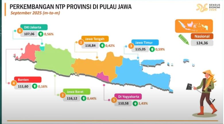“Alhamdulillah, NTP Jawa Tengah bulan September 2025 ini merupakan yang tertinggi di Pulau Jawa,” ujarnya dalam rilis resmi, pada Rabu, 1 Oktober 2025.