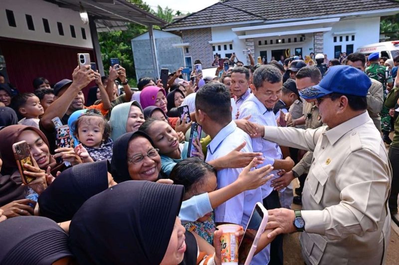 “Saya gembira sudah melihat rumah-rumah hunian sementara sudah mulai dibangun,” ujar Presiden Prabowo di hadapan warga pengungsi.