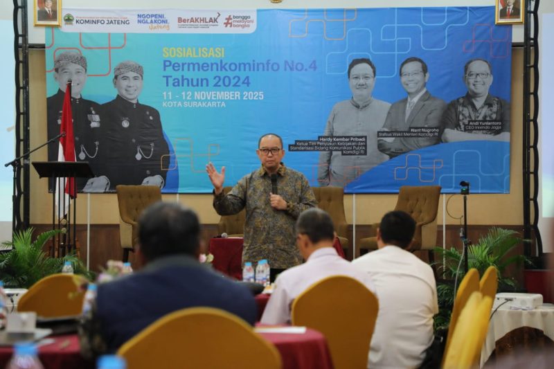 Melalui sosialisasi Peraturan Menteri Kominfo Nomor 4 Tahun 2024 di Lorin Solo Hotel, Surakarta, Rabu (12/11/2025), Staf Khusus Wakil Menteri Komdigi RI, Riant Nugroho, memaparkan konsep yang ia sebut sebagai “mantra penjinak naga”—sebuah metafora tentang bagaimana Kominfo dapat menjinakkan kompleksitas birokrasi dan memperkuat kepemimpinan daerah.